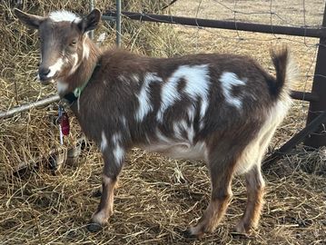 Josie is an ADGA registered goat. She will be bred to Yellowstone for Spring 2026 kidding, producing mini Nubians that are sure to impress alongside her lineage of Nigerian Dwarf goats.